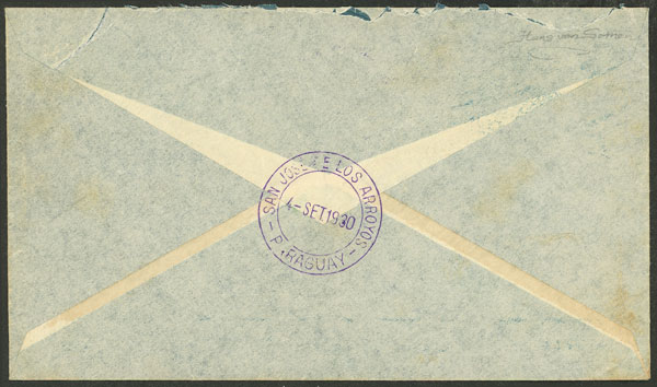 4/SE/1930 Asunción to San José de los Arroyos, test flight, arrival backstamp, VF quality! (Image) (Image-02)
