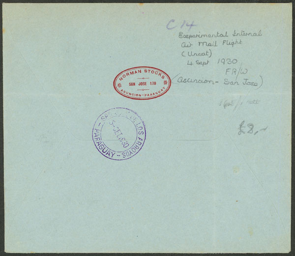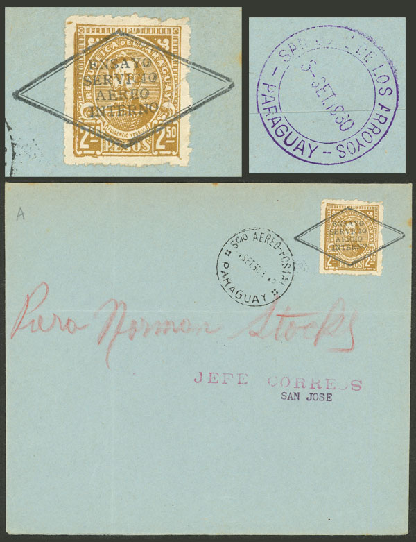 5/SE/1929 Asunción to San José, test flight, with arrival mark on back, very fine quality, rare! (Image) (Image-02)