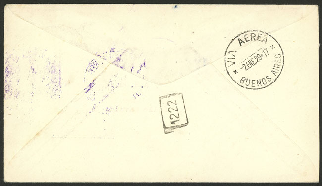 1/JA/1929 Asunción to Buenos Aires, test flight of Cie. Gral. Aeropostale SIGNED BY THE PILOT Ficarelli, on back arrival mark of Buenos Aires 2/JA, excellent quality! (Image) (Image-02)