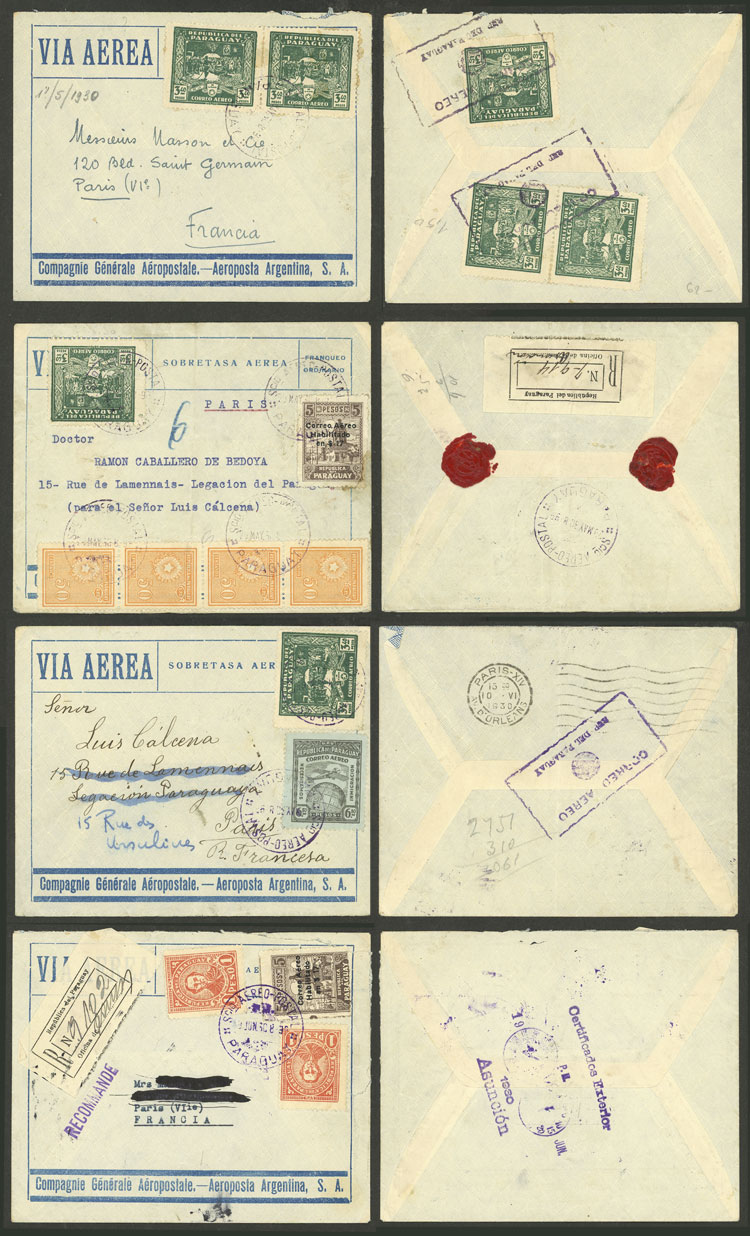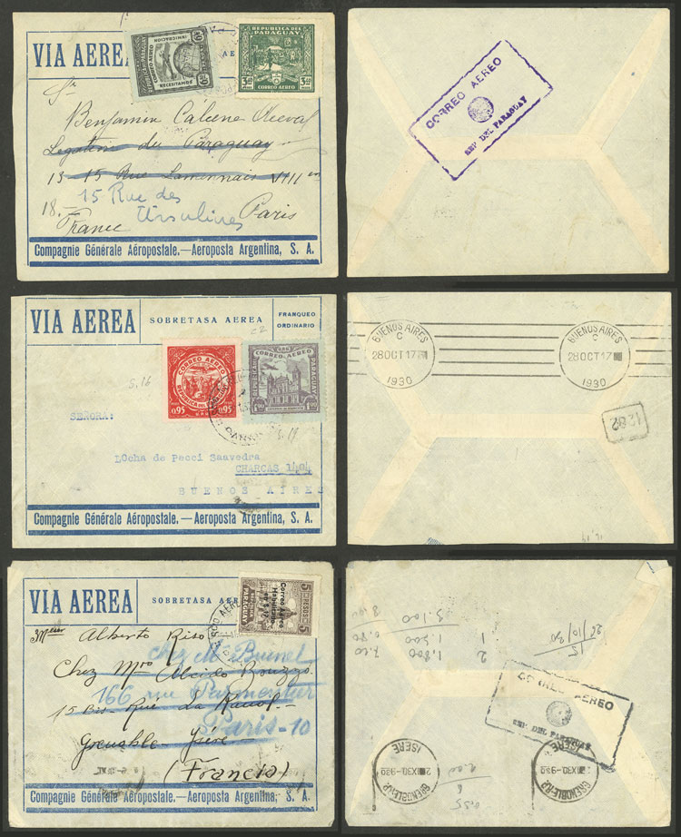 Airmail covers sent by C.G.A. to France between May and Octuber 1930 with varied frankings, very fine quality! IMPORTANT: Please view ALL the photos of the lot, because all the covers have been scanned (both sides) (Image) (Image-02)