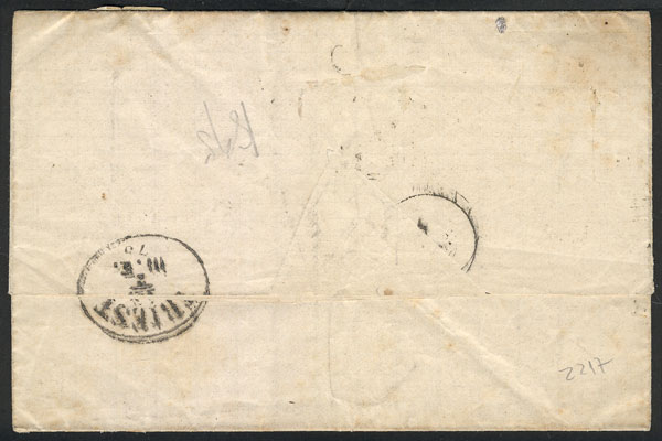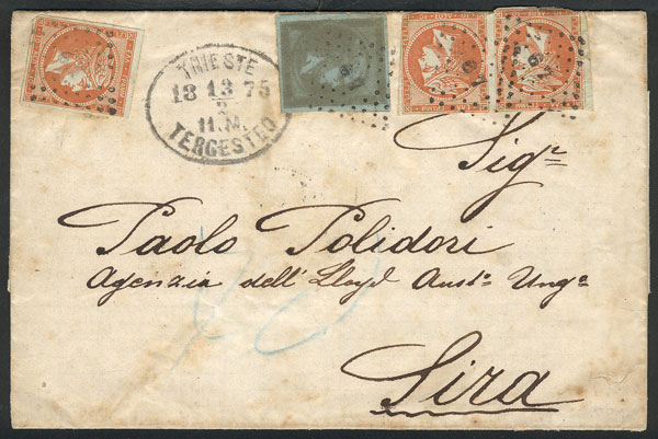 13/FE/1875 Trieste-Sira: letter dispatched without postage. On arrival it received Greek stamps for 70L., VF and interesting! (Image) (Image-02)