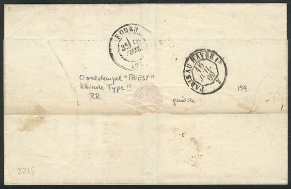 13/JUL/1869 Trieste-France: Folded cover franked by Sc.32 (Mi.40), superb, rare! (Image) (Image-02)