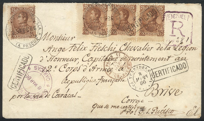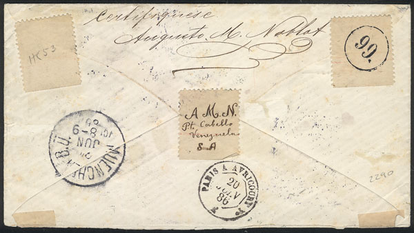 28/MAY/1886 P.Cabello - Munchen (Germany): Registered cover franked by Sc.72 + 76, via French paquebot, VF quality! (Image) (Image-02)