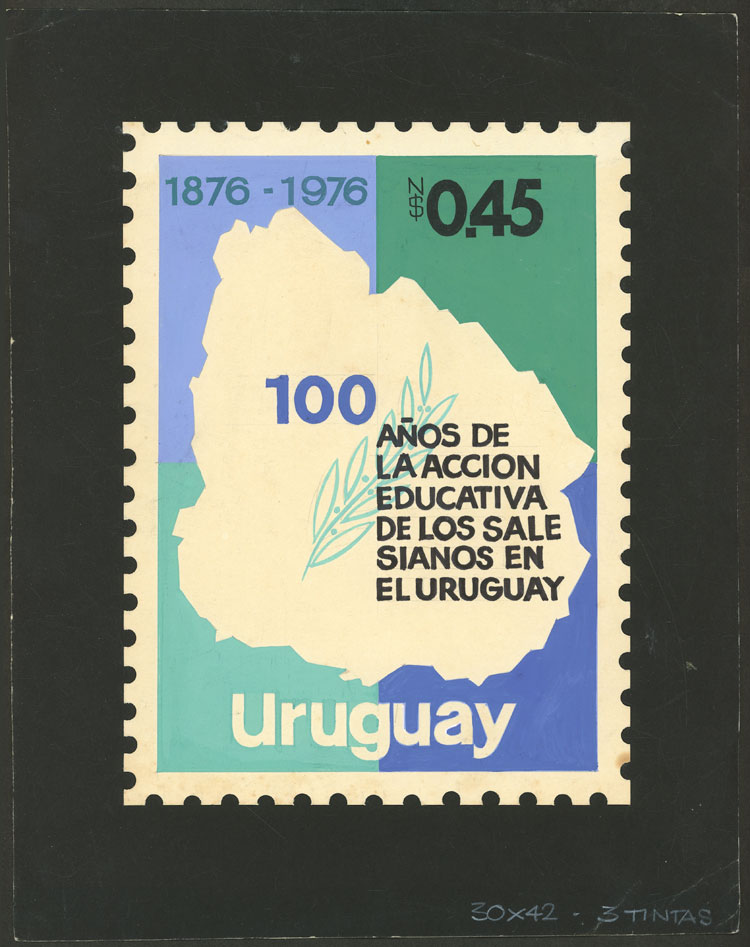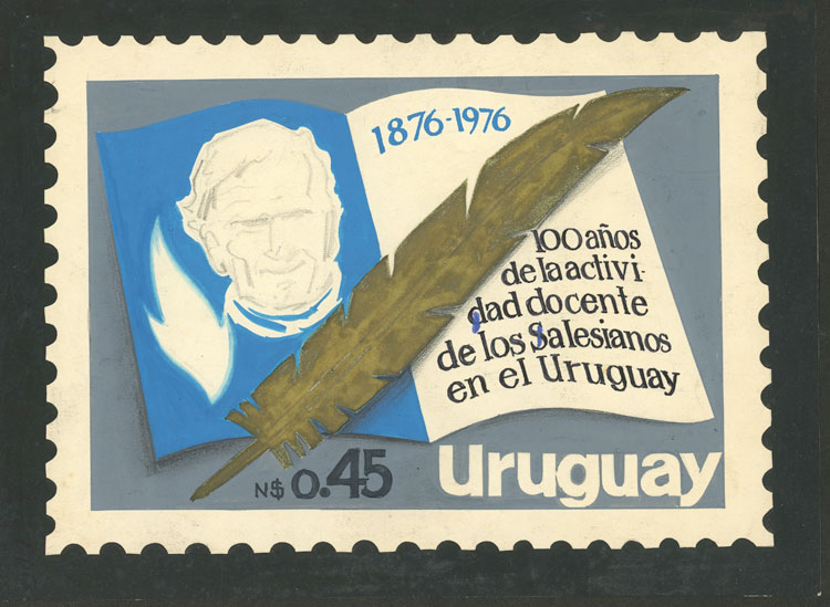 Sc.978, Centenary of Salecian Education in Uruguay, 2 original drawings of artist Medina M. (who designed the adopted design, very similar to one of these), very fine quality, unique! (Image) (Image-02)