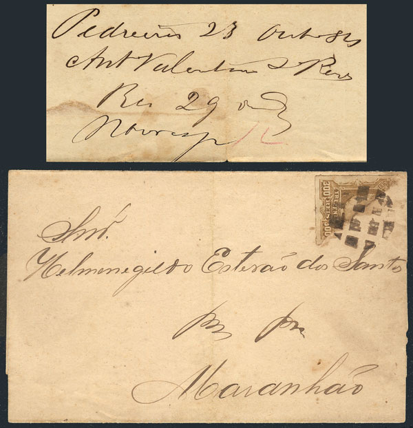 cover dated Pedreira? 23/OC/1884 to Maranhao, franked by Sc.75 BISECT, tied by mute segmented cork cancel, very fine quality and VERY RARE, with APS/ASDA and Philatelic Foundation certificate. (Image)