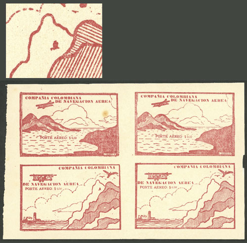 (Sc.50a), block of 4 with INVERTED overprint, MNH, excellent quality, Scott catalog value US$380. (Image)