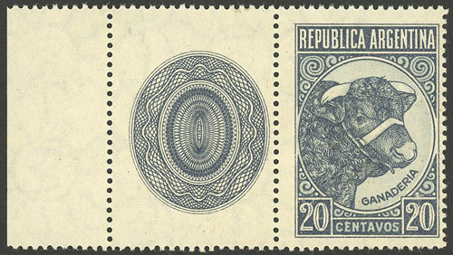 GJ.874CZ, 20c. Bull, with label showing medalion at left, VF (Image)