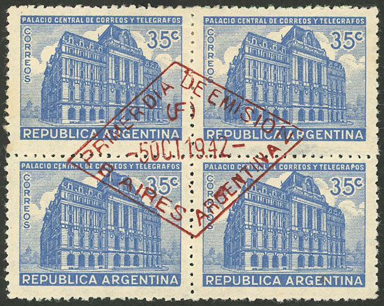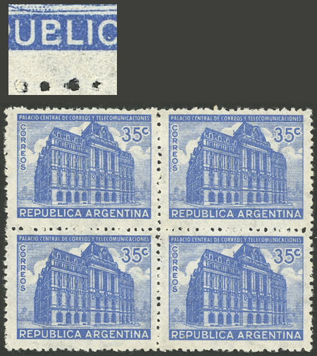 35c. Central Post Office, straight rays wmk, block of 4, one with variety: "B" of REPUBLICA incomplete, VF (Image)