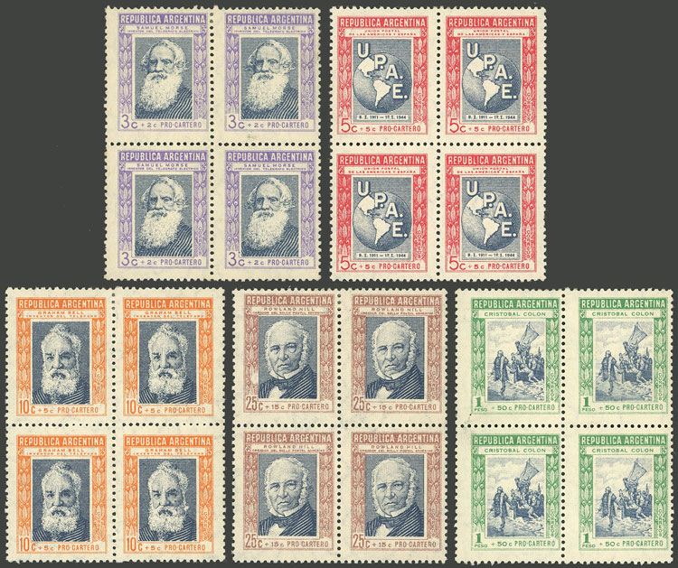 GJ.906/10, Postal Welfare, cmpl. set of 5 values in blocks of 4, VF quality (2 stamps in each block MNH!) (Image)