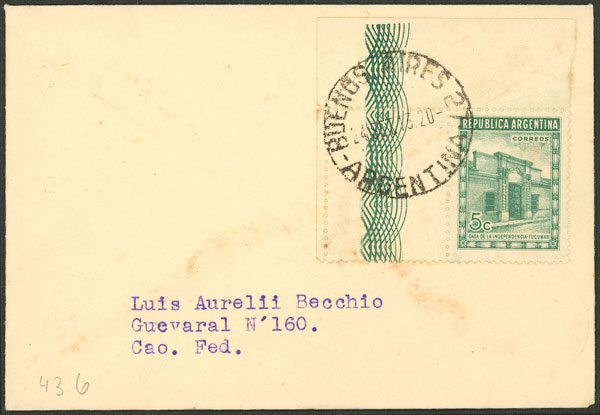 GJ.901CZ, 5c. House of Tucumán, with fancy left label, on cover used in Buenos Aires on 24/OC/1943, VF (Image)