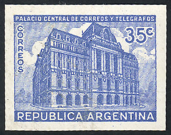35c. Palacio de Correos y Telégrafos, proof in blue, printed on glazed paper, VF (Image)