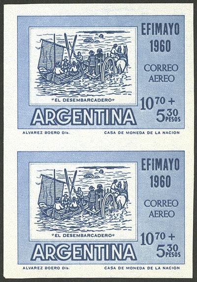 GJ.1185P, airmail, 10.70+3.50P. Inter-American expo, "EFIMAYO 1960", imperf pair, VF quality (Image)