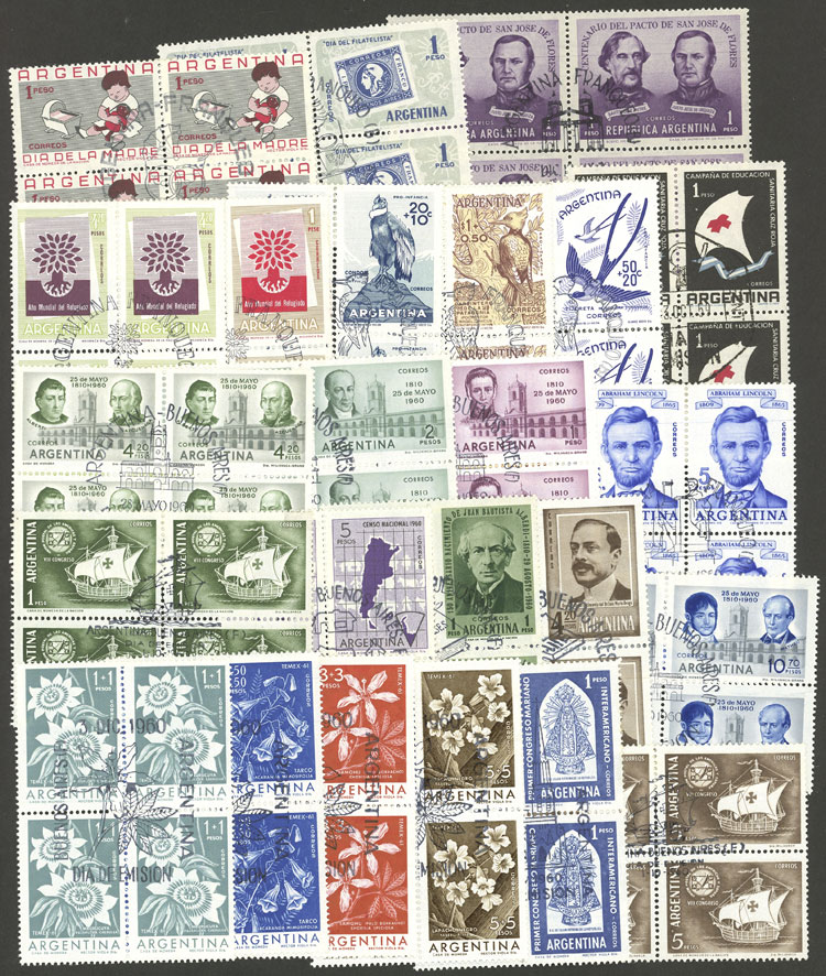+ other values, 24 different stamps of 1959 and 1960 in blocks of 4 with first day pmk, VF (Image)