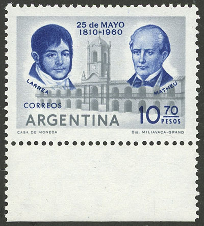 GJ.1174A, 10.70P. May Revolution 150 years, glazed paper with vertical wmk, sheet margin, VF (Image)