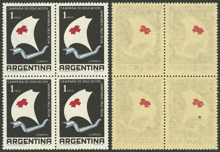 1959 Red Cross, block of 4 with variety: OFFSET IMPRESSION ON BACK of the cross, MNH, VF quality! (Image)