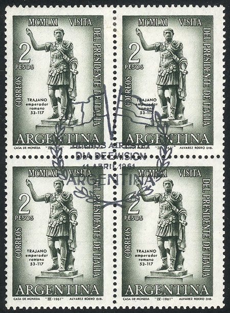 2P. Visit of the president of Italy, glazed paper, horizontal watermark, block of 4 with first day postmark, VF quality (Image)