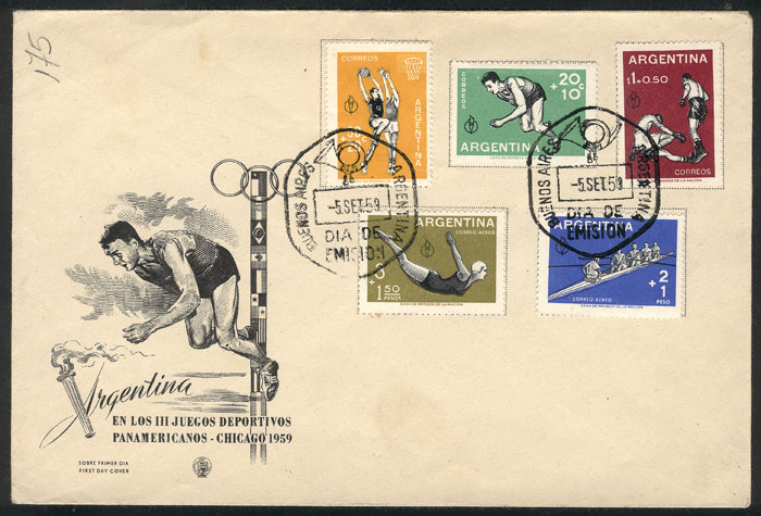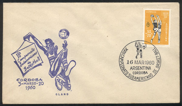 50+20c. Panamerican Games, on cover with special datestamp for South American Basketball Championship of 16/MAR/1960, VF quality (Image)