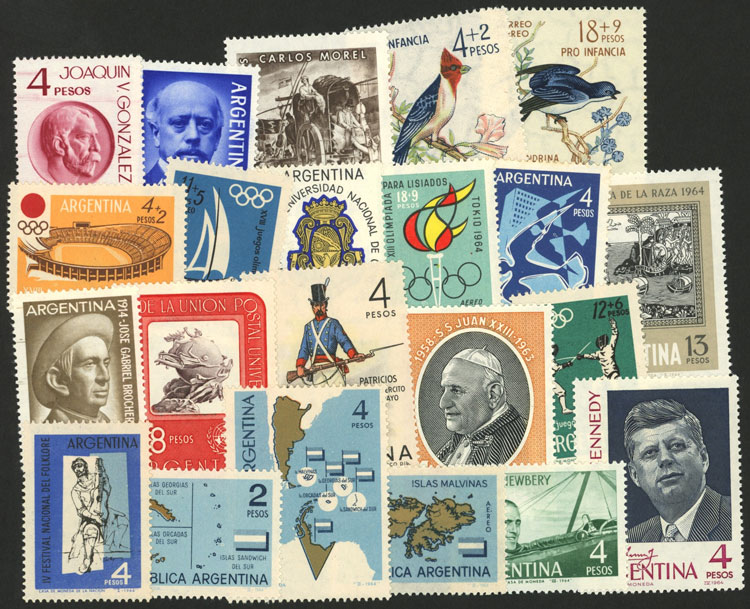 + other values, 1964 cmpl. yearset of commemorative stamps (without the stamps from the souvenir sheets), VF quality (Image)