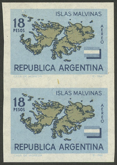GJ.1274P, airmail, 18P. South Orkneys, imperf pair, VF (Image)