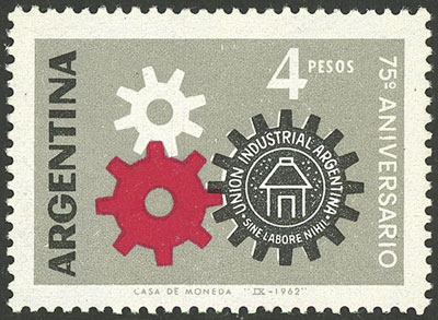 10+10P. Argentina 1962 Intl. stamp exhibition, glazed paper with vertical wmk, VF quality (Image)