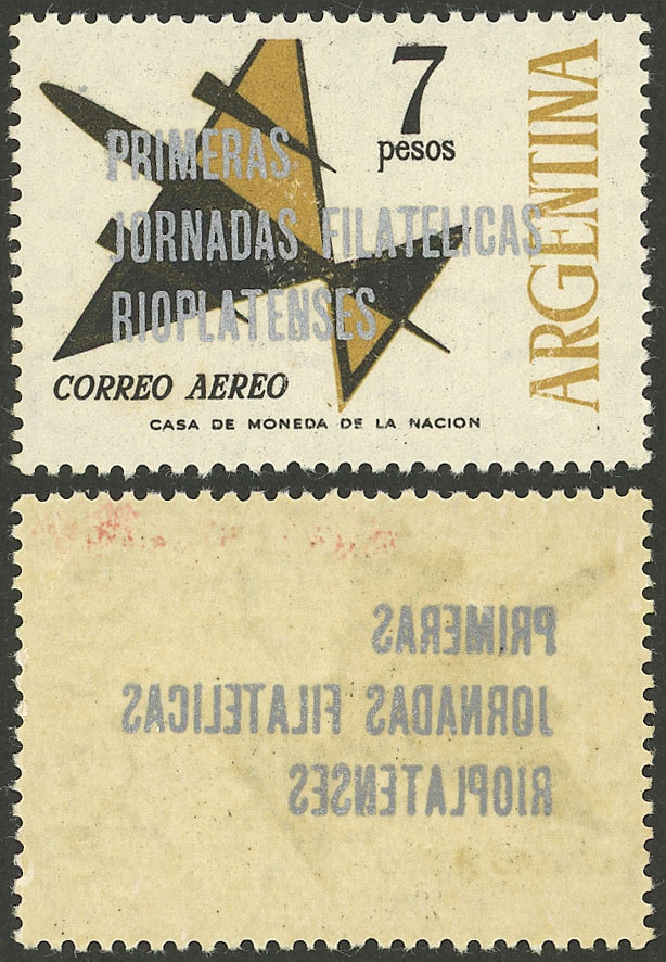 airmail, 7P. 1st River Plate philatelic meetings, with variety: Offset impression of the overprint on back, VF (Image)
