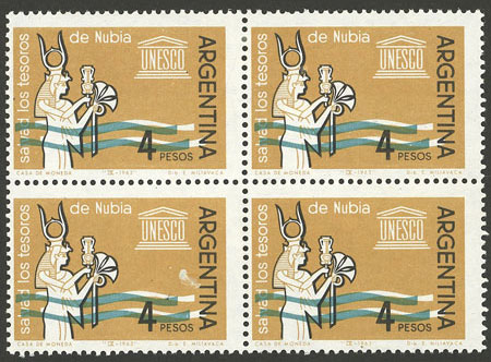 4P. Nubian treasures, variety: Cyan color shifted, in block of 4, VF (Image)