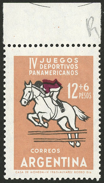12+6P. Pan-American Games, variety: Carmine jacket shifted, with sheet margin, VF (Image)