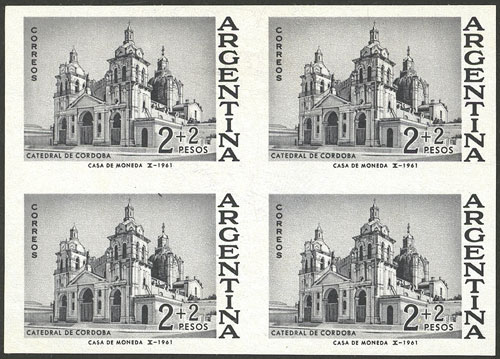 2+2P. 1962 Argentina Intl. Philatelic Exhibition, proof in black, printed on chalky paper with watermark and gum, block of 4, VF (Image)