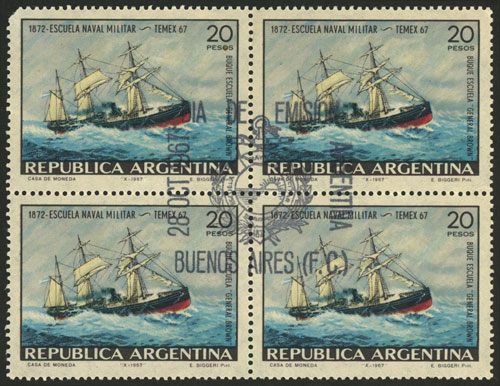 20P. Military Navy School, Temex 67, block of 4 with first day postmark, VF quality (Image)