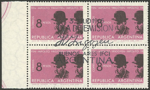 8P. Yrigoyen, block of 4 with first day postmark, VF (Image)