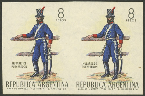 GJ.1325P, 8P. Husares de Pueyrredón, military uniforms, imperf pair, VF (Image)