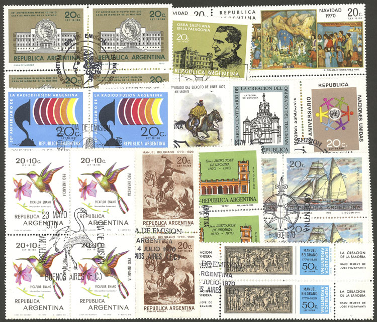+ other values, commemorative stamps issued in 1970 in blocks of 4 with first day pmk, without airmail, VF quality (Image)