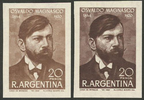 20P. Dr. Osvaldo Magnasco, 2 proofs in different shades of dun, unsurfaced paper, with watermark and gum, VF (Image)