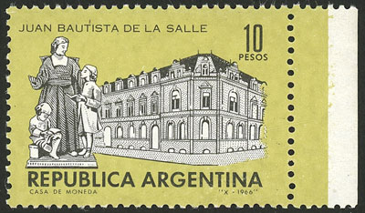 10P. Juan Bautista de La Salle, proof in green and black, on glazed paper with watermark, gummed, VF (Image)