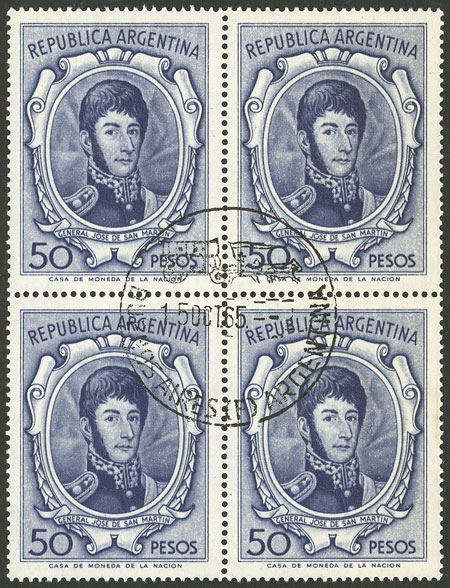 50P. San Martín, block of 4 with first day postmark, VF (Image)