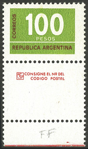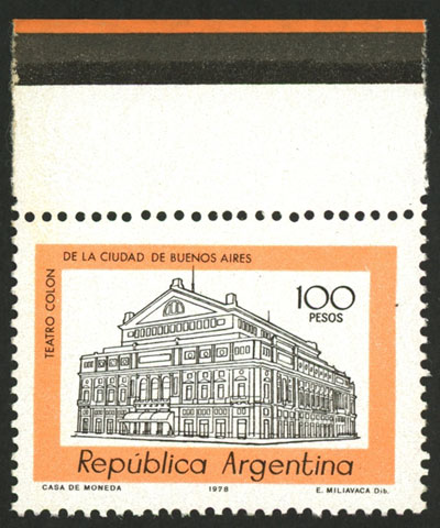 GJ.1787A, 100P. Colon Theater (with year), with Casa de Moneda wmk, sheet margin, VF quality (Image)