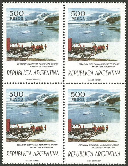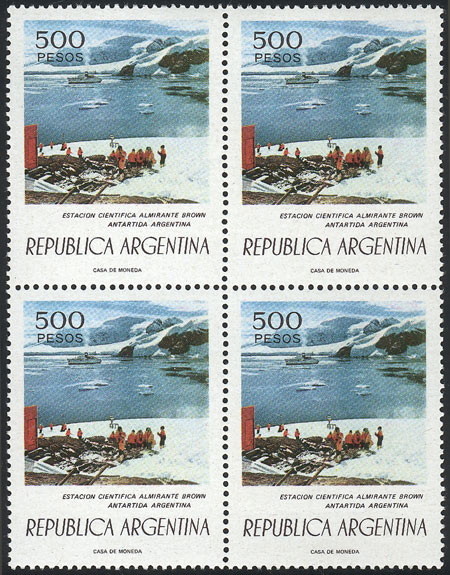 500P. Alte. Brown Antarctic base, block of 4, VF (Image)
