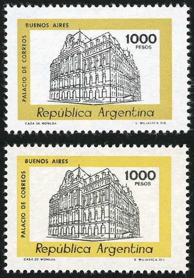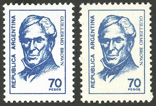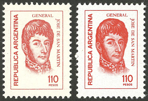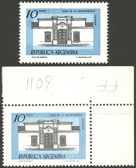 + 1780B, 10P. House of Tucuman (9 bars), 2 stamps printed on chalky paper, one with small printer imprint and the other one with large imprint, VF (Image)