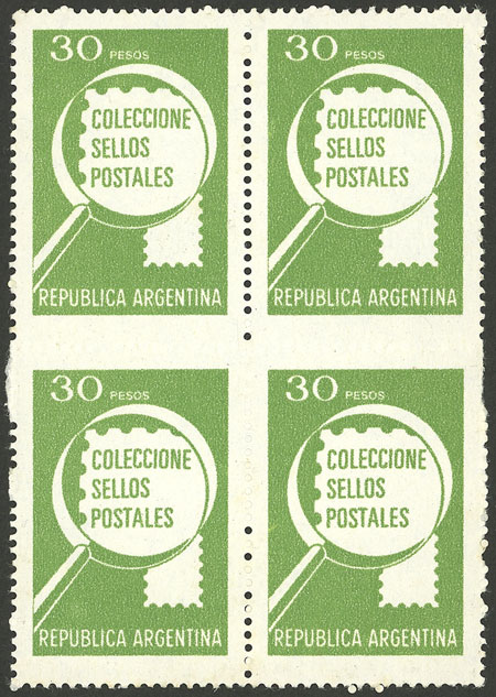 30P. Collect Postage Stamps, block of 4 with variety: Incomplete perforation, VF (Image)