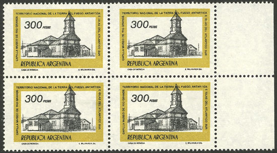 GJ.1790NS, 300P. Chappel of Rio Grande, UV neutral unsurfaced paper with fluorescent sprinkes, marginal block of 4, VF (Image)