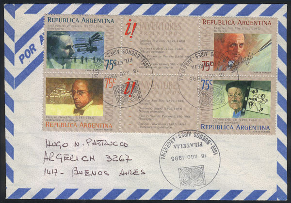 GJ.2684/7, Inventors, set with 2 gutters on cover used in Buenos Aires on 18/AU/1995, VF (Image)