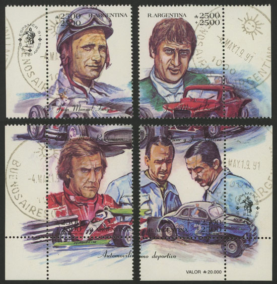 GJ.2537/40, ESPAMER 91, Car racing, set of 4 values, from the s.sheet, used, VF quality (Image)