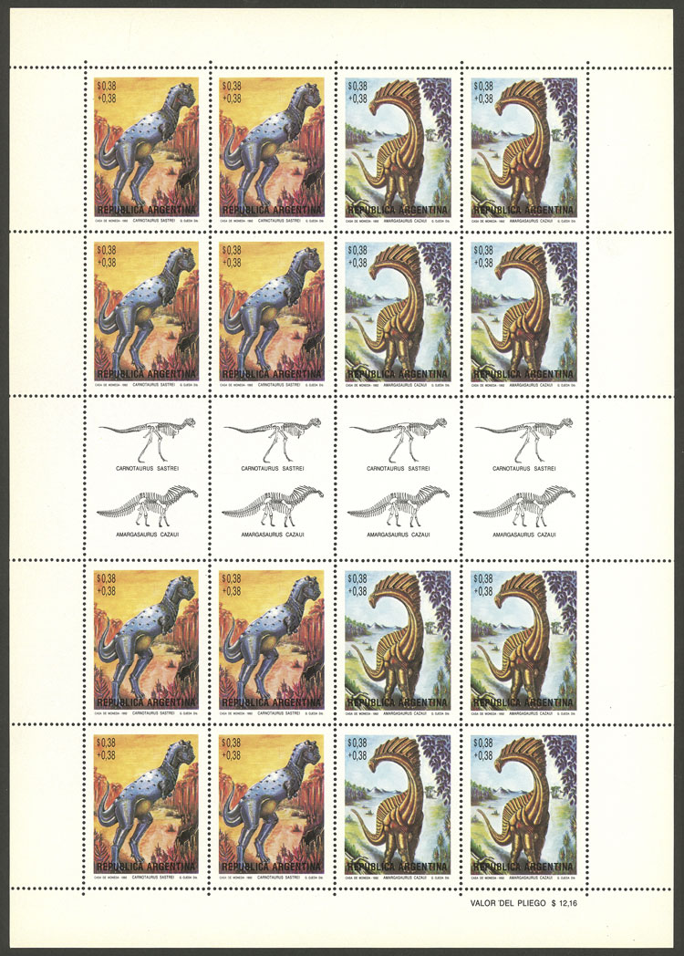GJ.2602/3EN, Dinosaurs, 8 sets with 4 gutters (complete sheet), VF (Image)