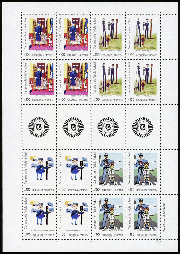 GJ.2468/71EN, Police, Contest to design postage stamps, cmpl. sheet with 4 sets and gutters, VF (Image)