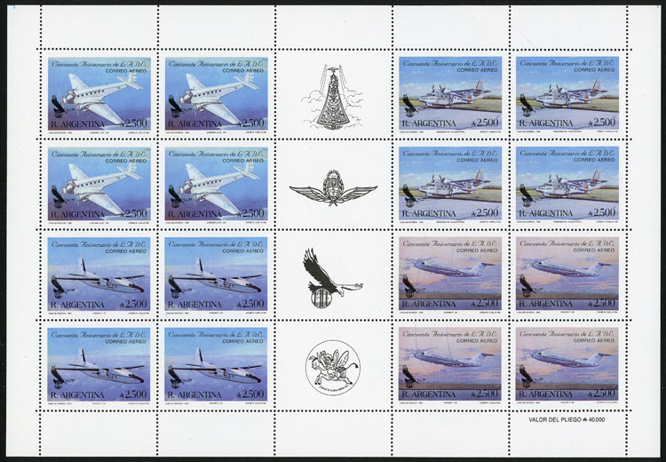 GJ.2503/6EN, airmail, LADE airlines, cmpl. sheet with 4 sets with gutters, VF (Image)
