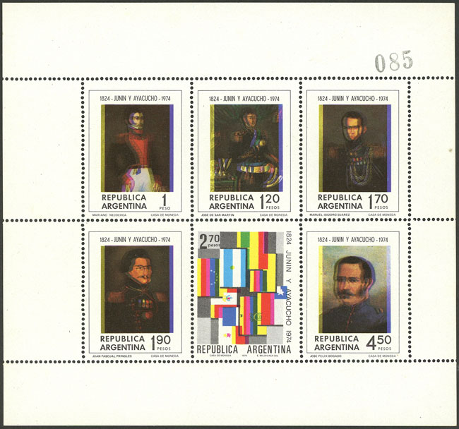 24, Battles of Junín and Ayacucho, variety: Shifted impression of the colors, VF quality (Image)