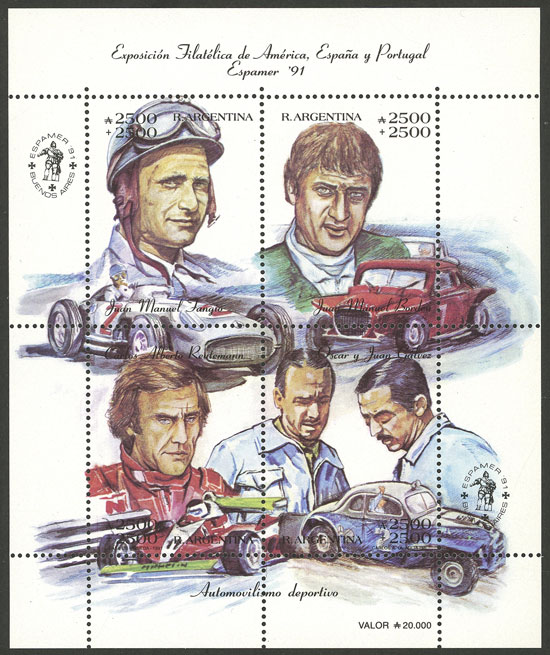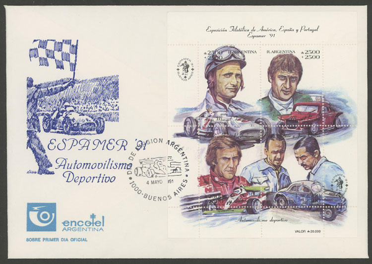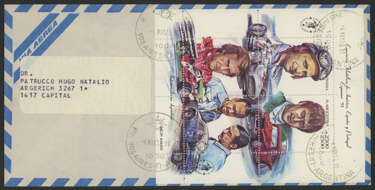 97, ESPAMER 91, Car racing, s.sheet on cover used in Buenos Aires on 4/MAY/1991, VF quality (Image)