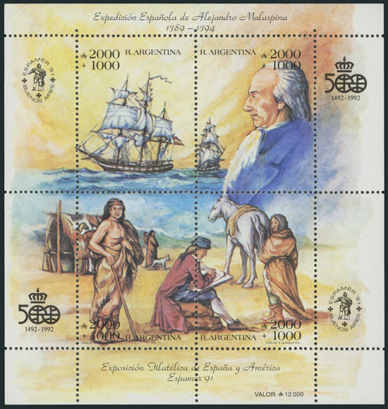 92, 200 years of Spanish Expedition by Malaspina, VF quality (Image)