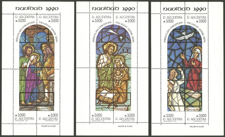 93/5, Christmas, stained glass, cmpl. set of 3 s.sheets, VF (Image)