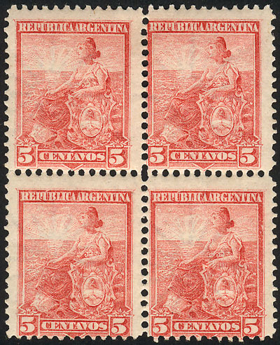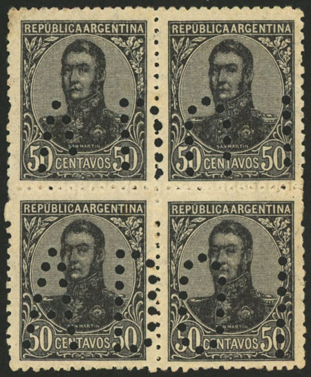 50c. San Martín, block of 4, perf 13¼x12½, perforated INUTILIZADO, VF quality (Image)
